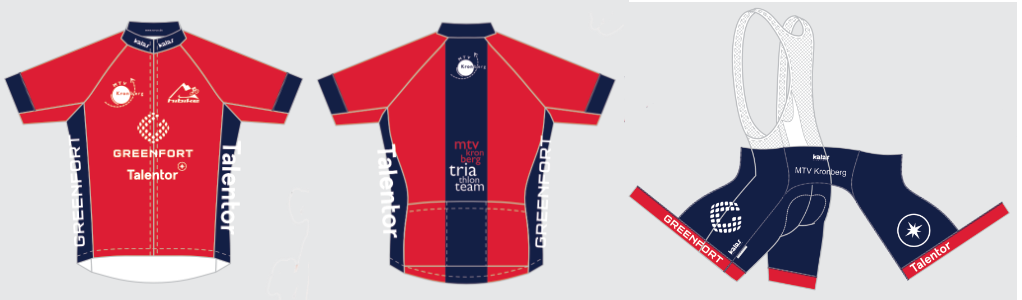 Die Radsportbekleidung von KALAS ist weiterhin im aktuellen Design (Rot/Blau).